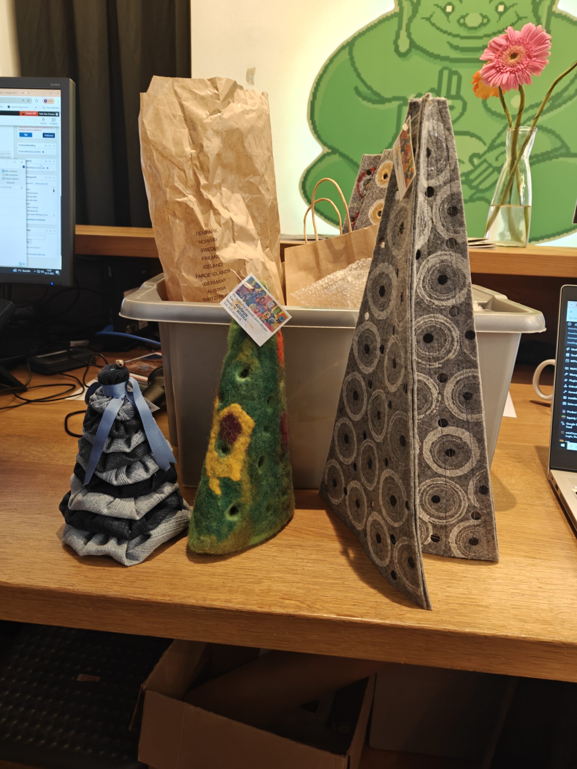 Groot keramiek, Spijkerstof, Vilt groen, Vilt grijs, Vilt blauw